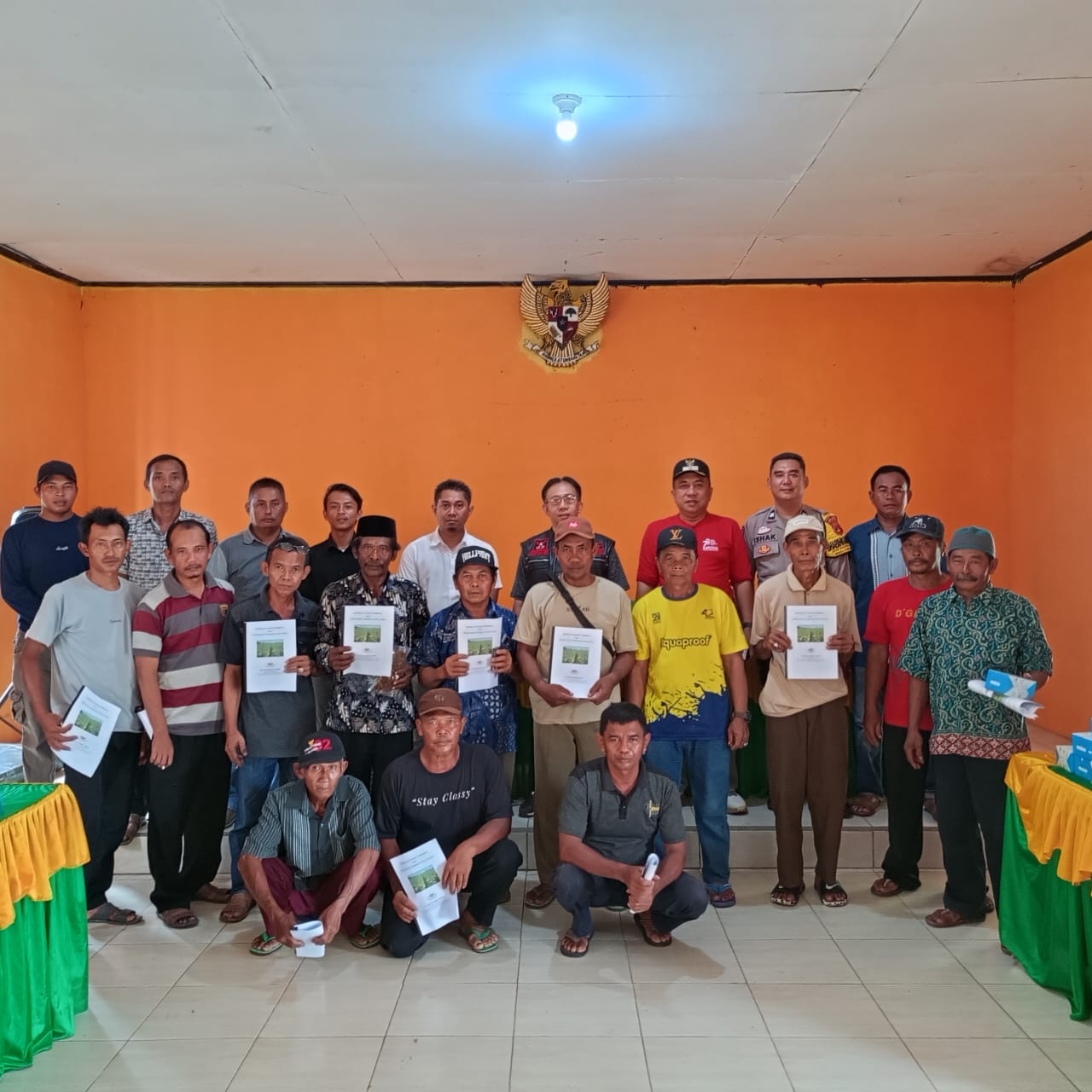 Puluhan para calon petani tembakau sangat antusias mendengarkan pemaparan dari tenaga ahli PT Setia Bara Abadi (pabrik rokok HS) bahkan setelah selesai Acara. Mereka si berikan buku panduan dari Pihak pabrik rokok bermerek HS tersebut.