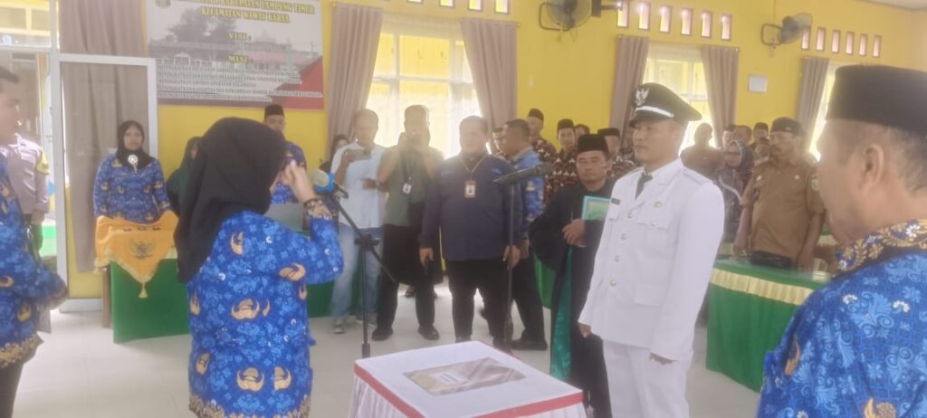 Pemerintah daerah kabupaten Lampung Timur Melaksanakan Pengambilan Sumpah Janji dan Pelantikan Kepala Desa terpilih Desa Marga batin kecamatan Wawai karya kabupaten lampung timur Bp M.Kundori.