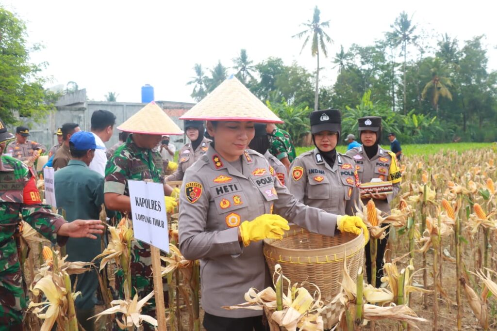 Lampung Timur (Grib Jaya Post) – Kapolres Lampung Timur, AKBP Heti Patmawati, menghadiri Panen Raya Kuartal III 2025 di Dusun III, Desa Raman Aji, Kecamatan Raman Utara, Sabtu (27/9/2025). Panen raya ini merupakan bagian dari Program Swasembada Pangan Nasional 2025 yang digagas pemerintah.