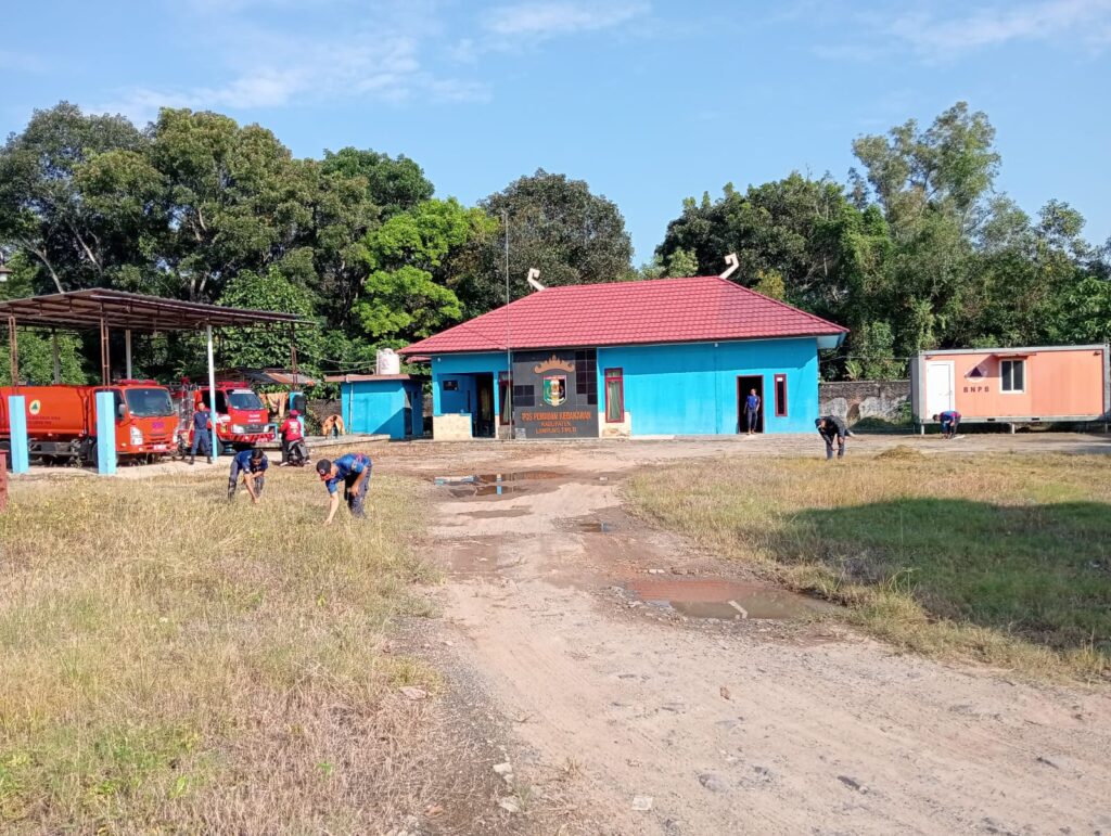 Kegiatan bersih-bersih ini dilakukan oleh tiga regu yang dikerahkan oleh Kalaksa BPBD Kabupaten Lampung Timur. Kegiatan gotong royong ini dilakukan oleh para petugas Damkar dengan suasana riang gembira.